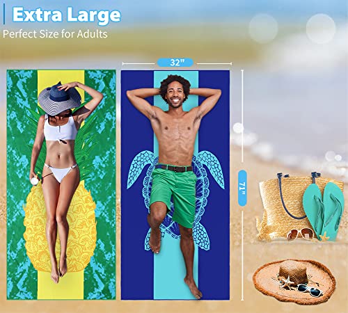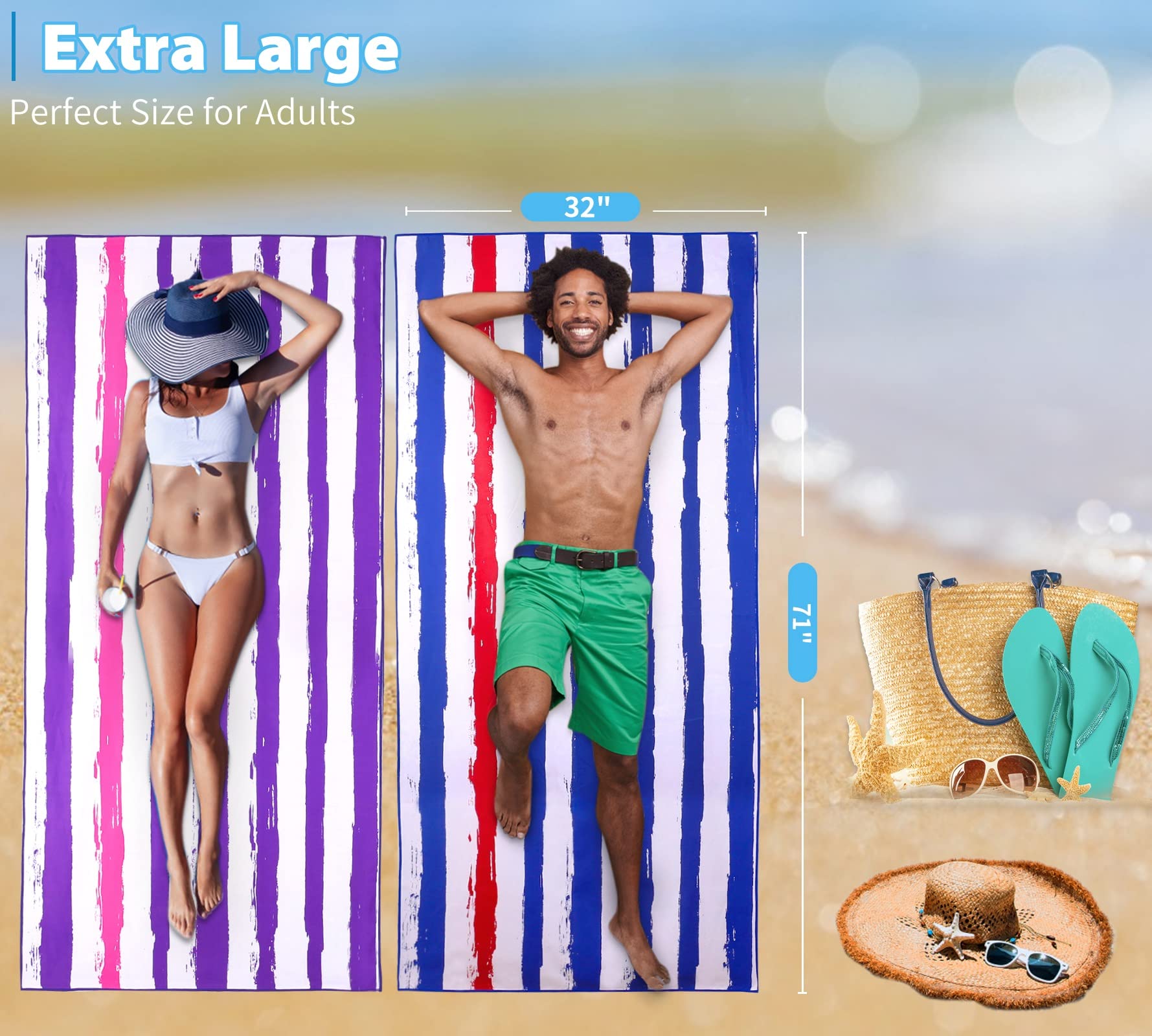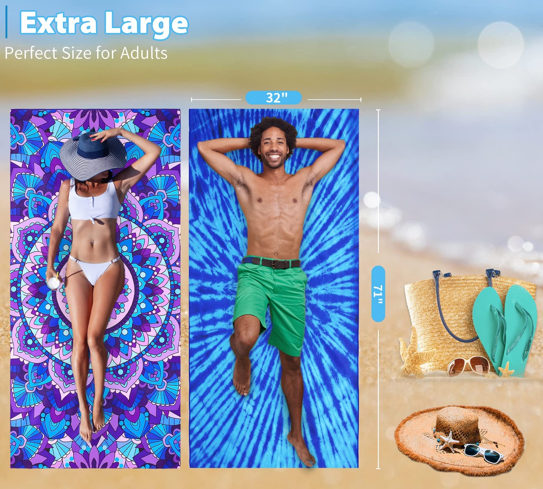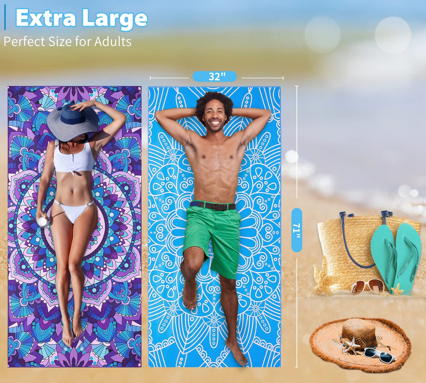 2 Pack Microfiber Oversized Lightweight Beach Towel 71"x32" XL Extra Large Thin Sand Free Towels Travel Swim Pool Yoga Gym Camping for Adults Women Men Beach Essentials Accessories Vacation Gift