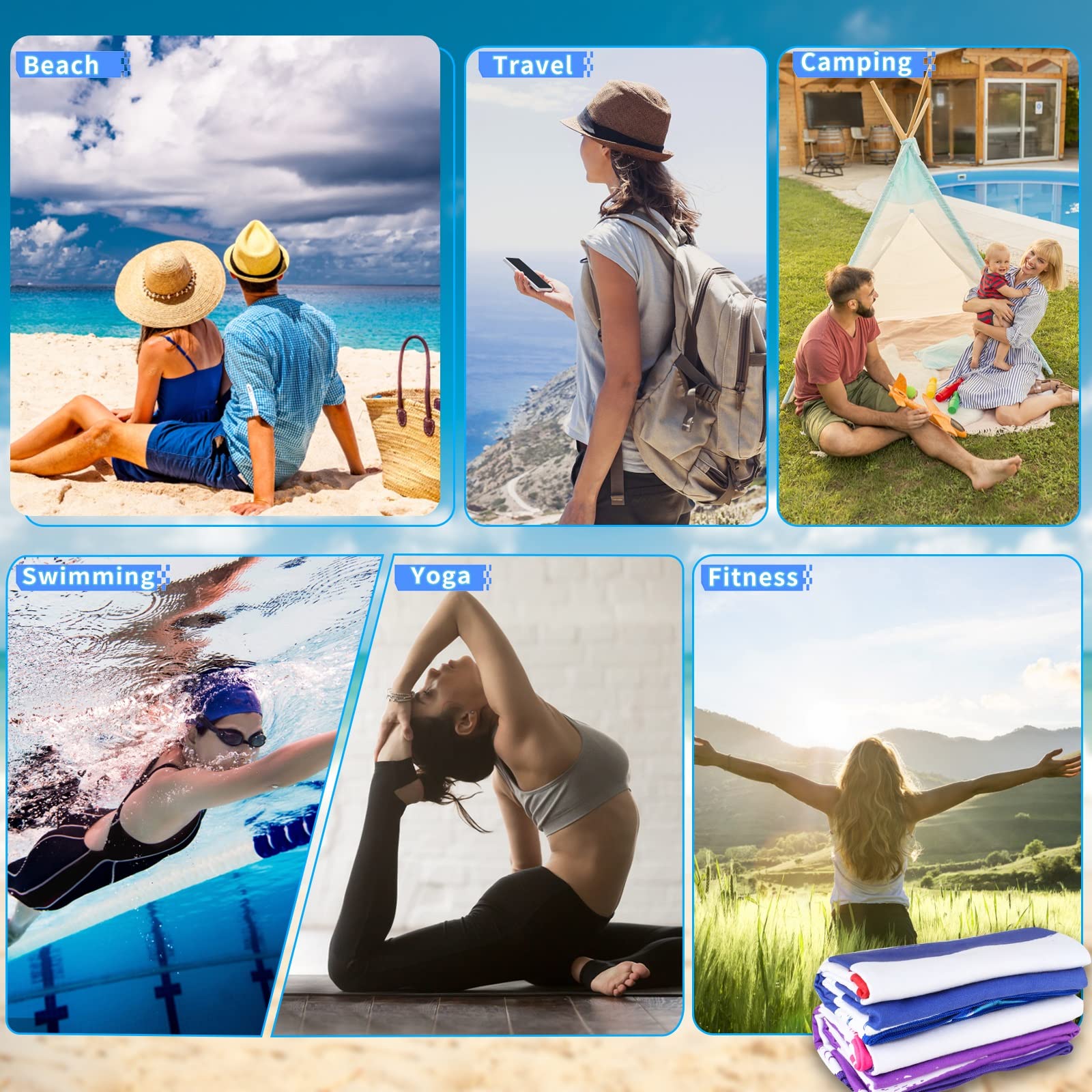 - ABSORBENT AND LIGHTWEIGHT : Microfiber beach towels contain millions of individual fibers that absorb up to 5 times their own weight. Save yourself the embarrassment and cold after bathing or swimming in the pool or beach. You can rest or wrap your body on it, or dry easily from head to toe. We feature compact fabric that you can easily fold to the perfect size to maximize luggage space and pack other items for easy portability