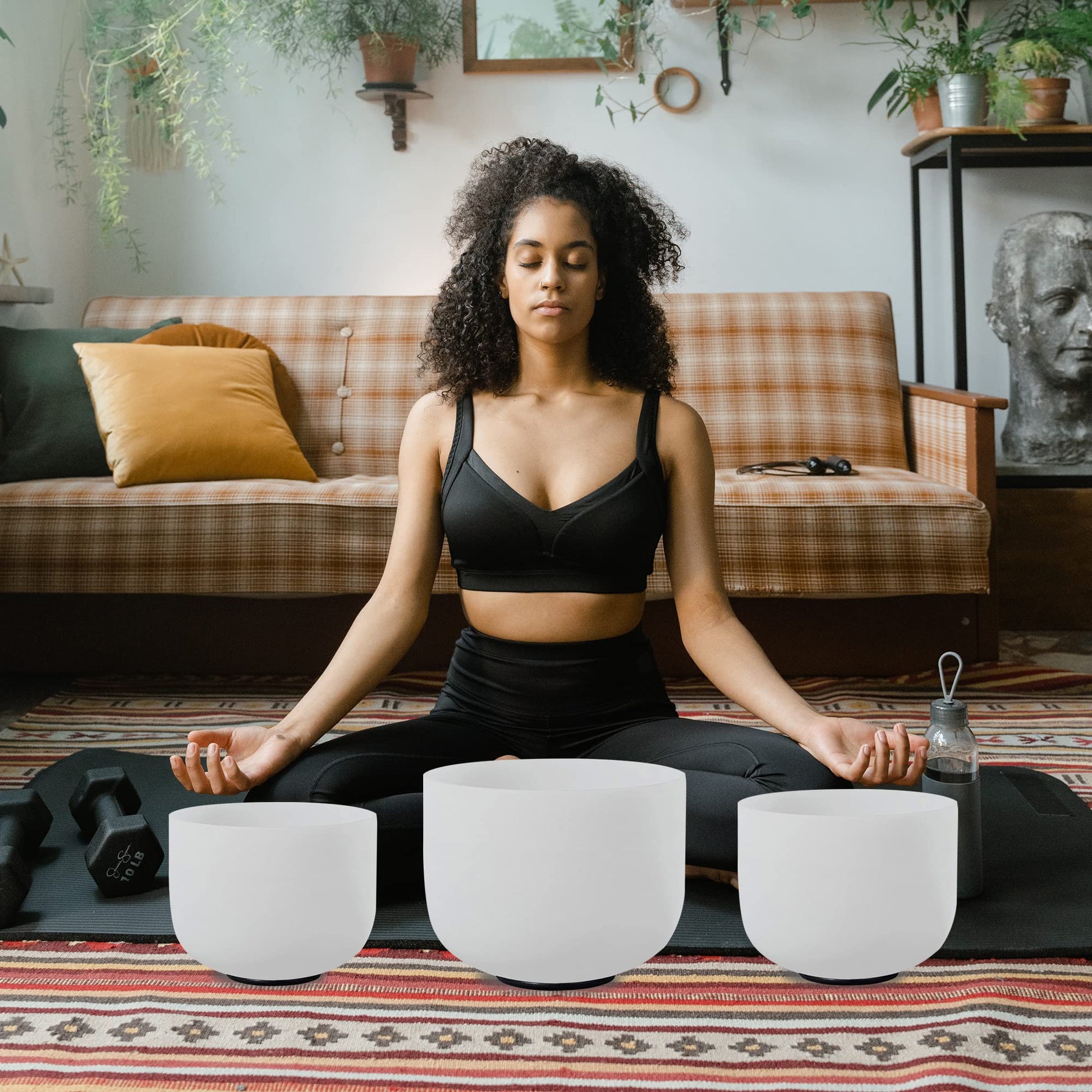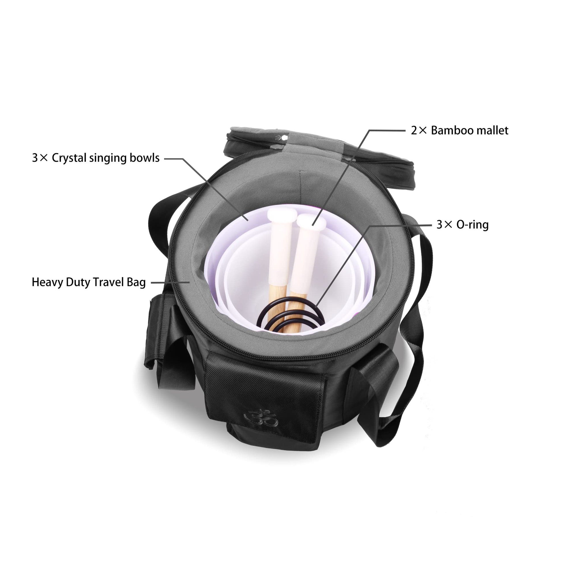 - What You Get: Our singing bowls meditation set comes with a 7-9 inch 3 white singing bowls, as well as mallet, O-ring, and for convenient storage, easy transport, and enhanced protection for your accessories.