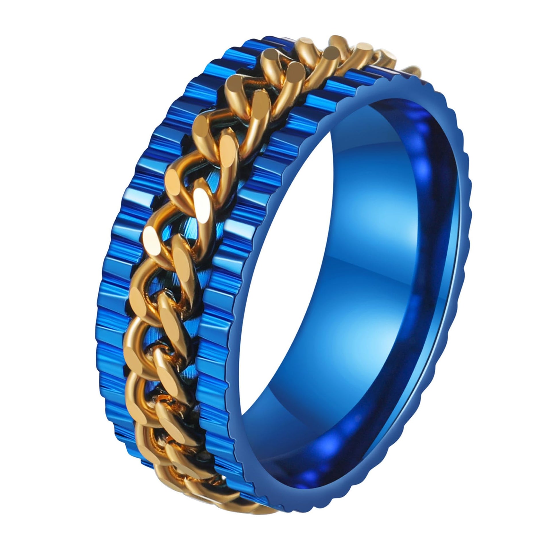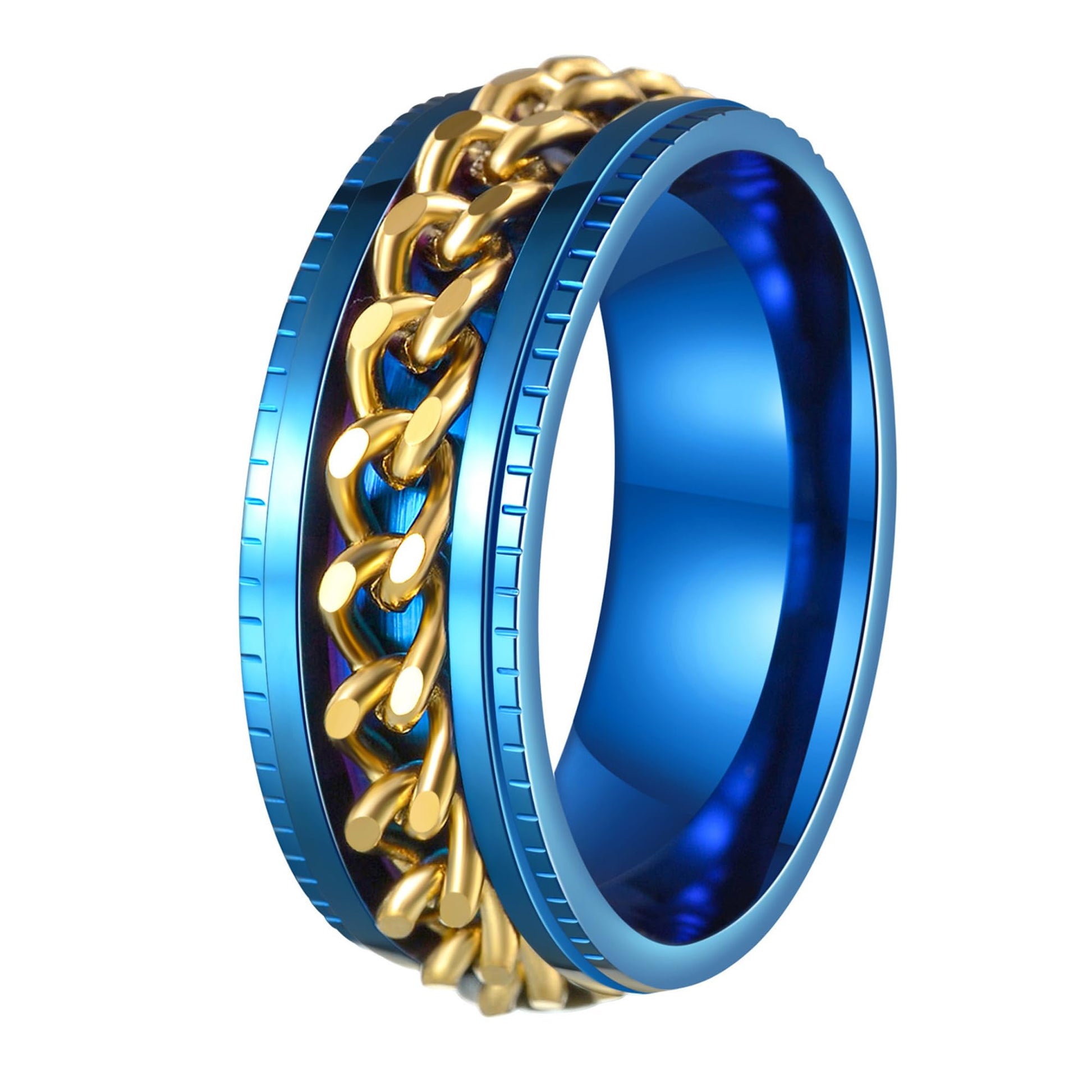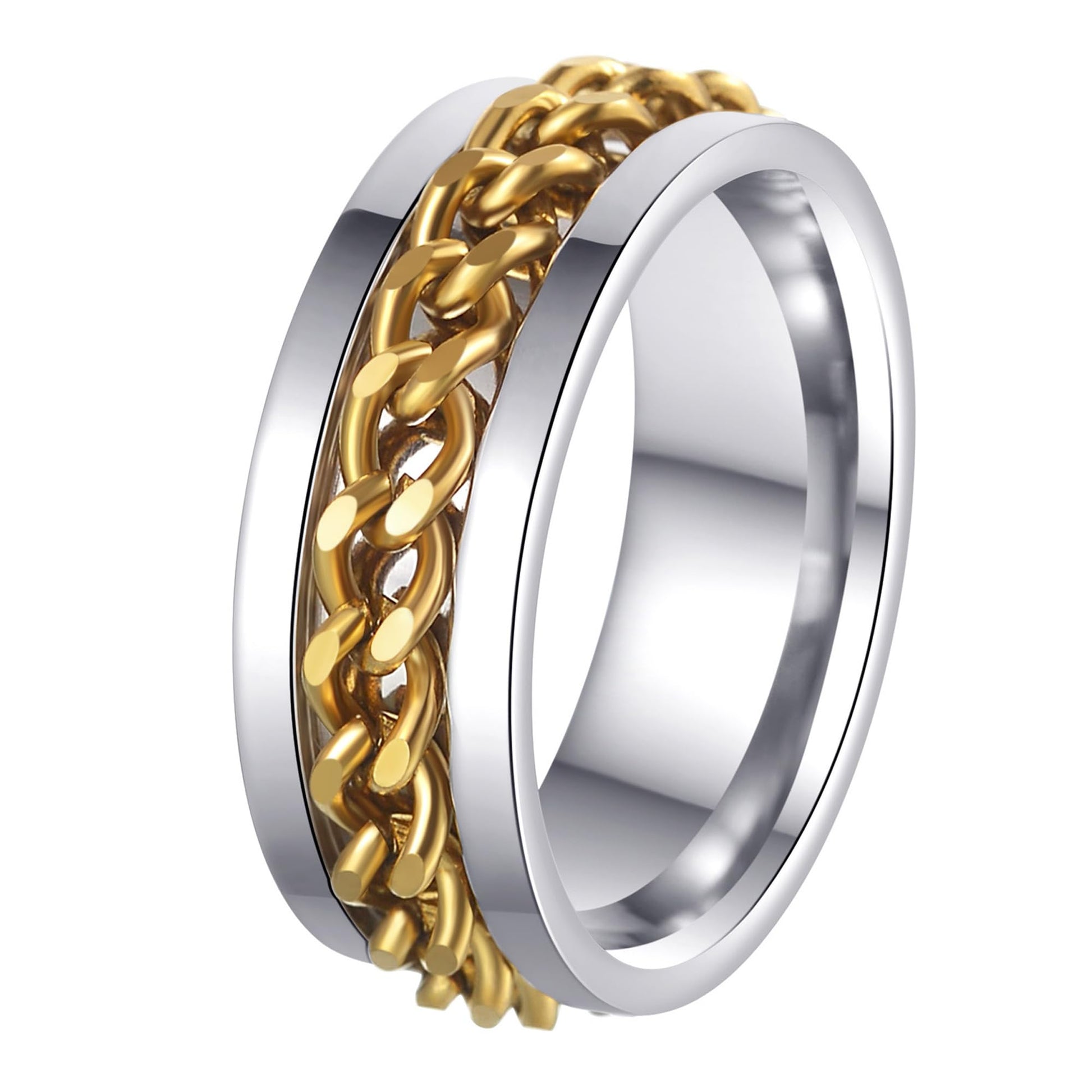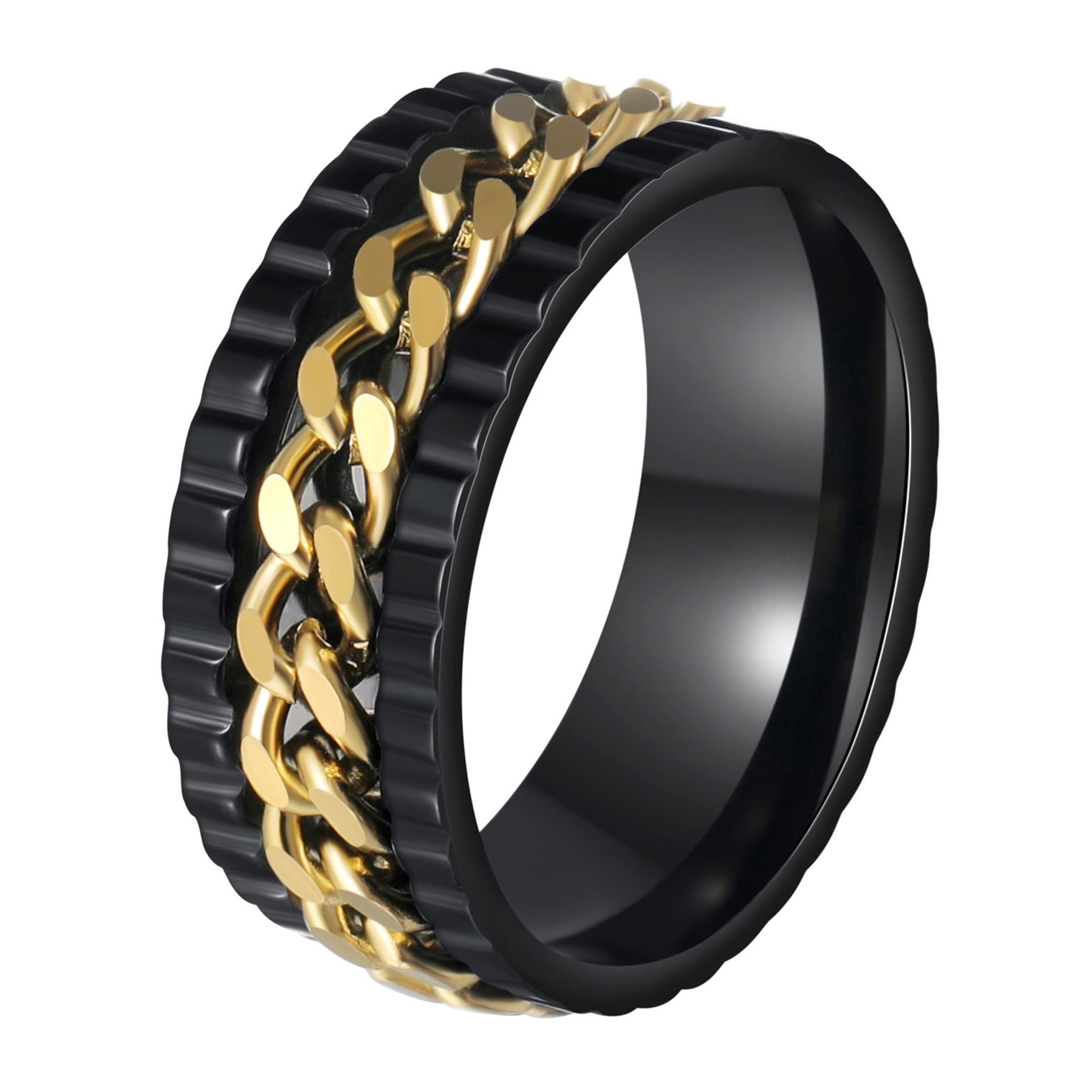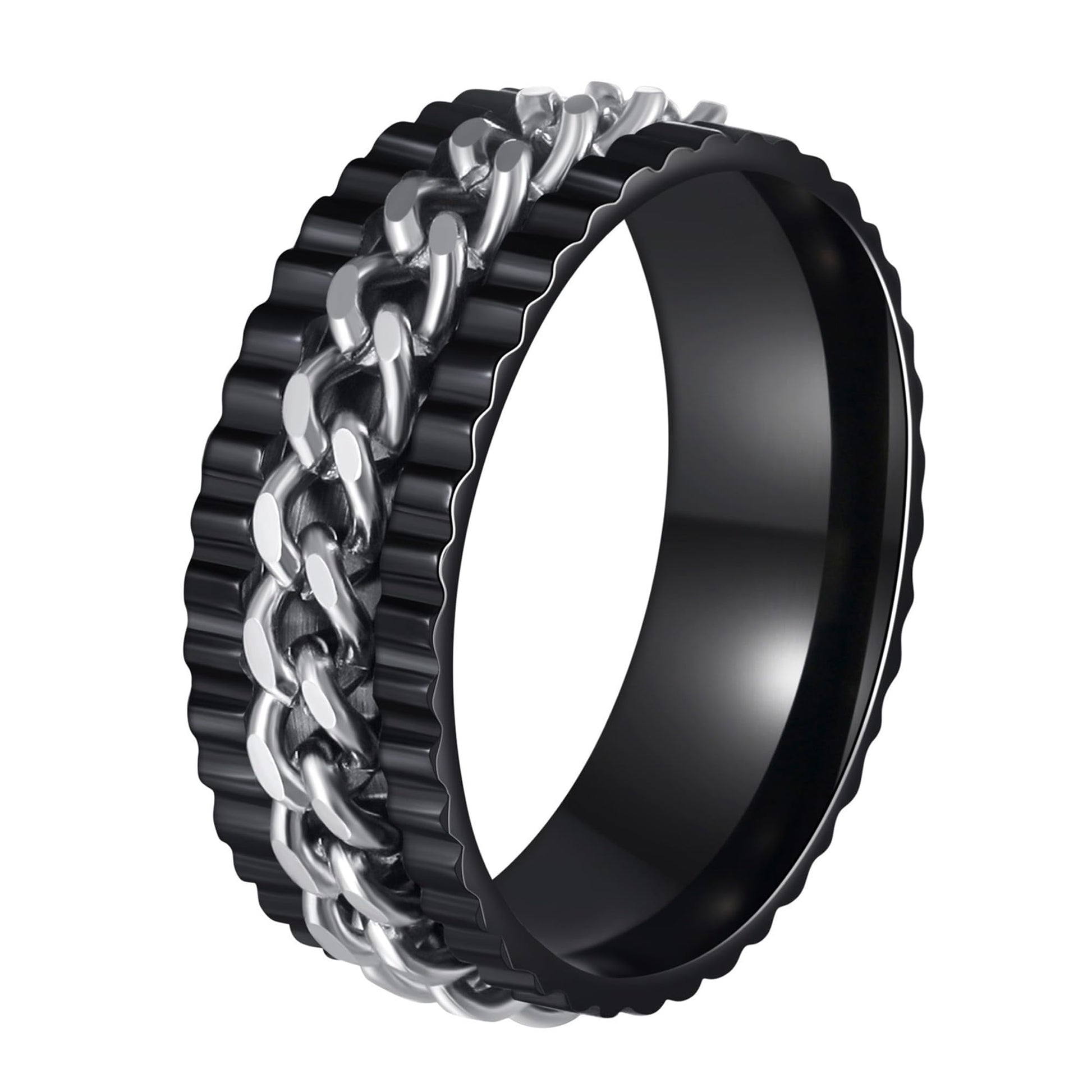 - Stress-Relief Fidget Rings: Grooved edge and curb chain inlaid design, masculine and trendy. Manually spinning the chain helps effectively relieve anxiety, stress, or other negative emotions