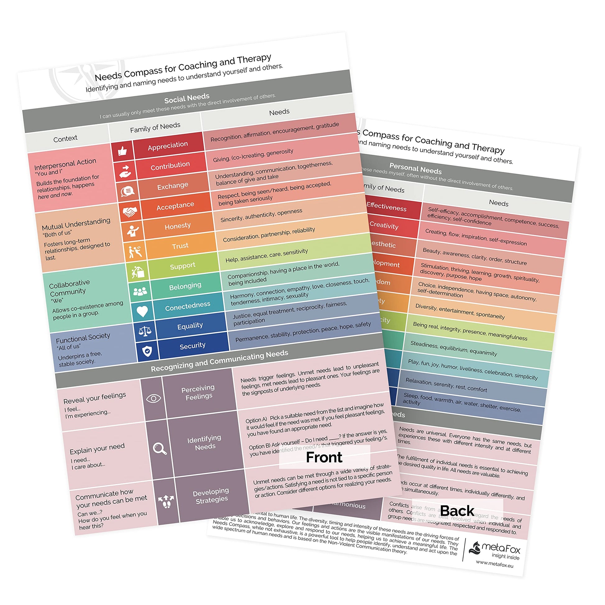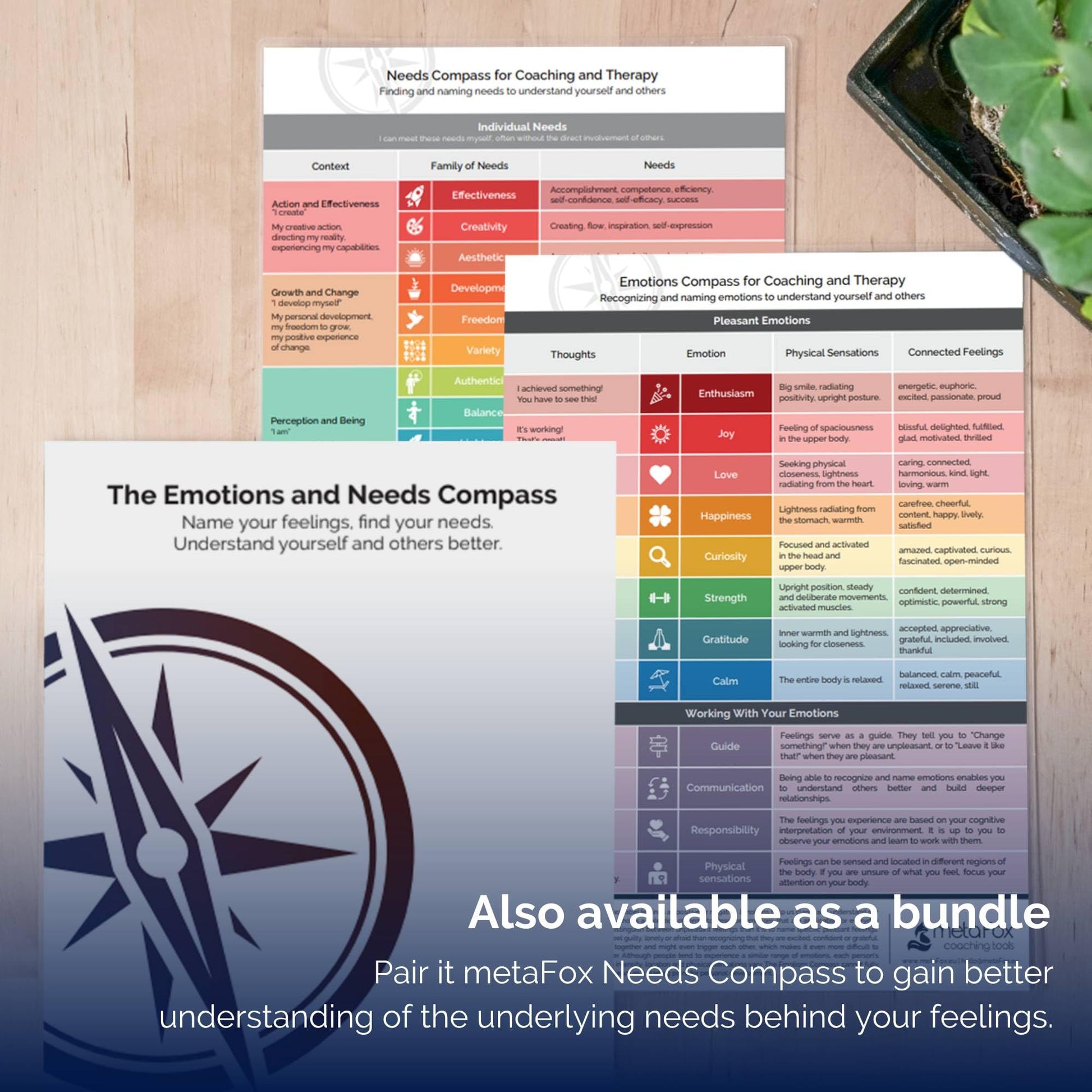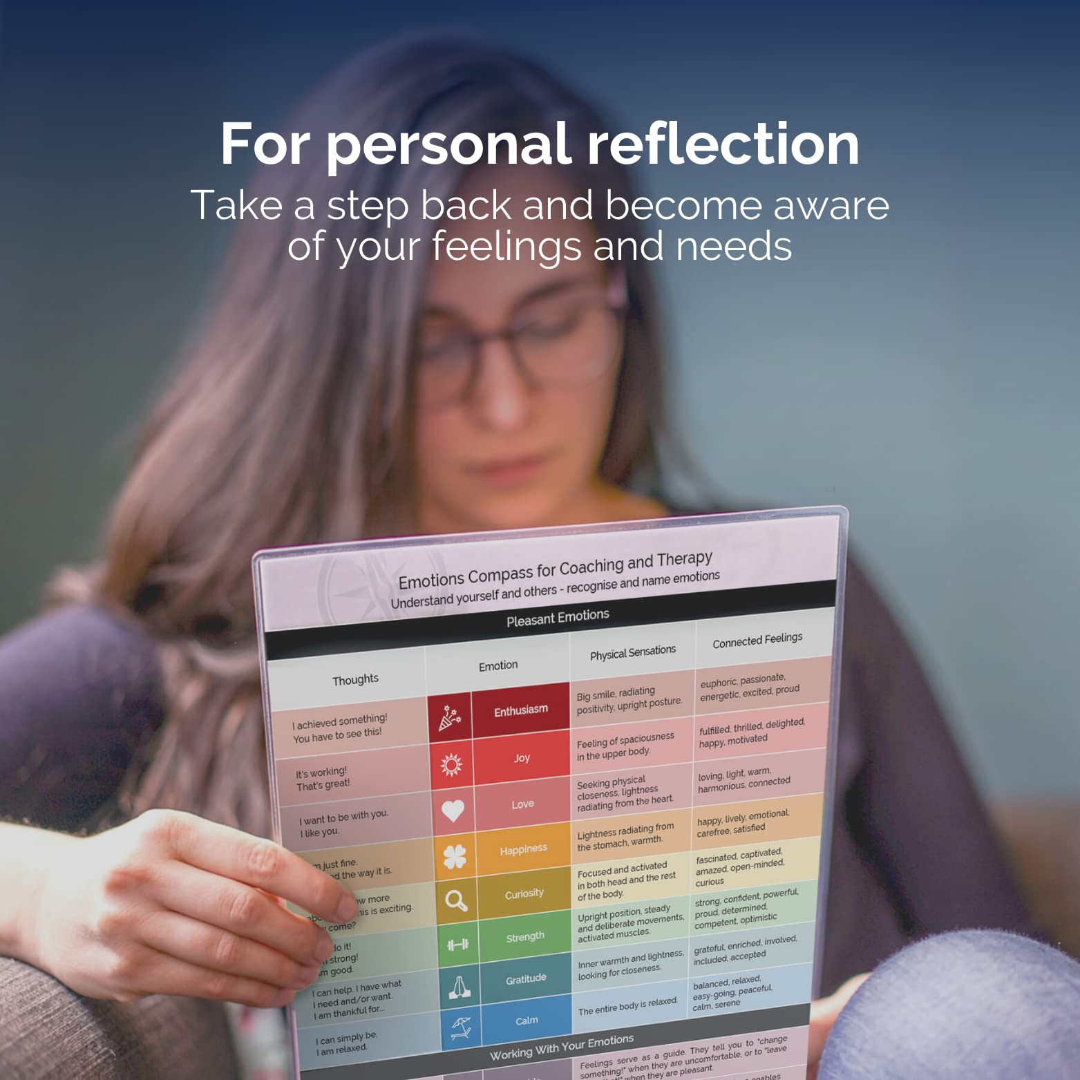 metaFox Emotions Compass – Laminated Feelings Chart for Adults & Therapists, Emotional Chart for Self-Reflection, Therapy & Coaching