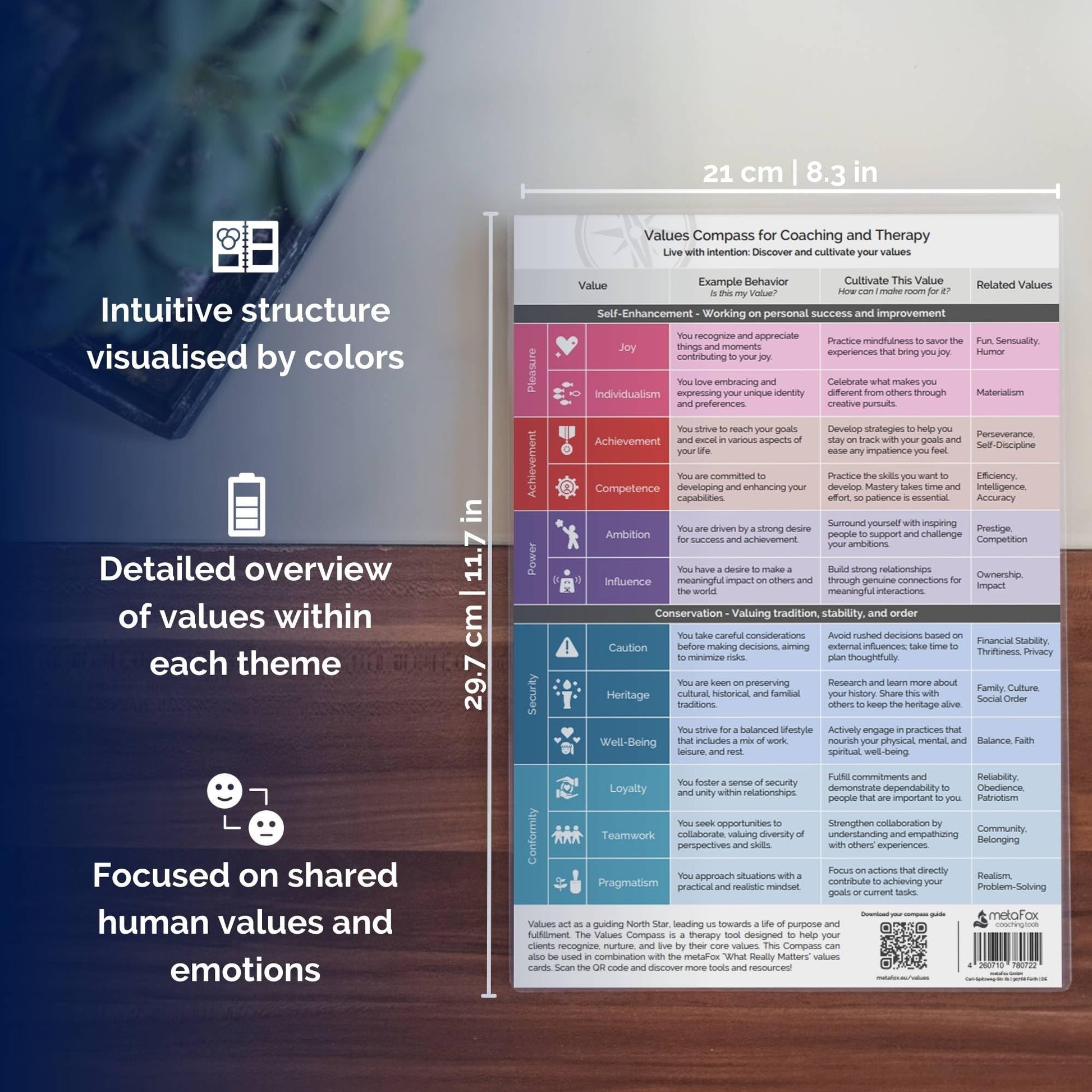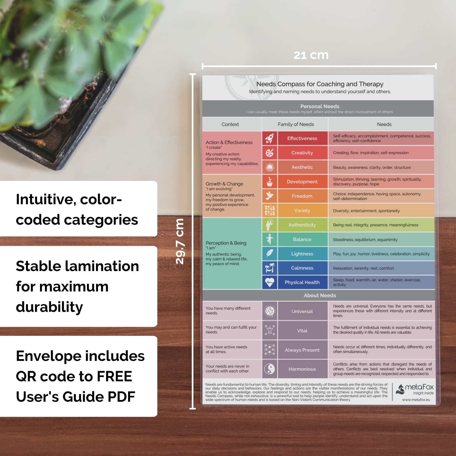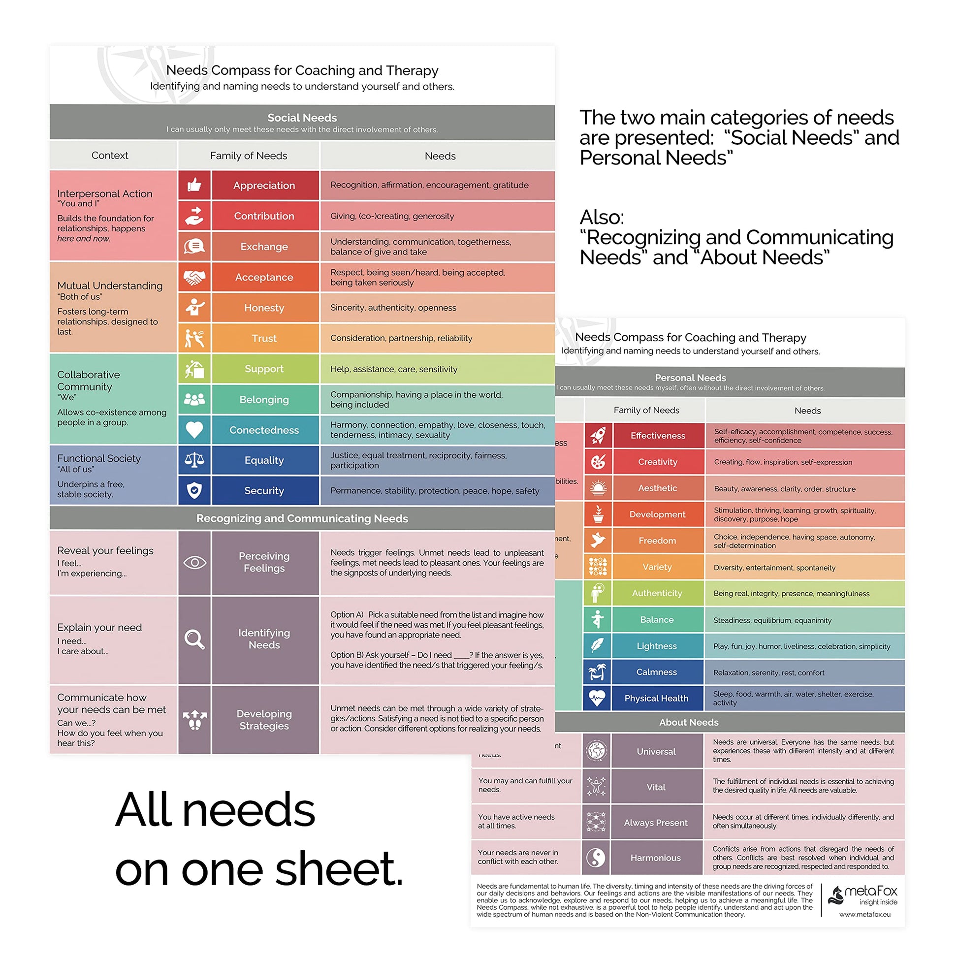 metaFox Emotions Compass – Laminated Feelings Chart for Adults & Therapists, Emotional Chart for Self-Reflection, Therapy & Coaching