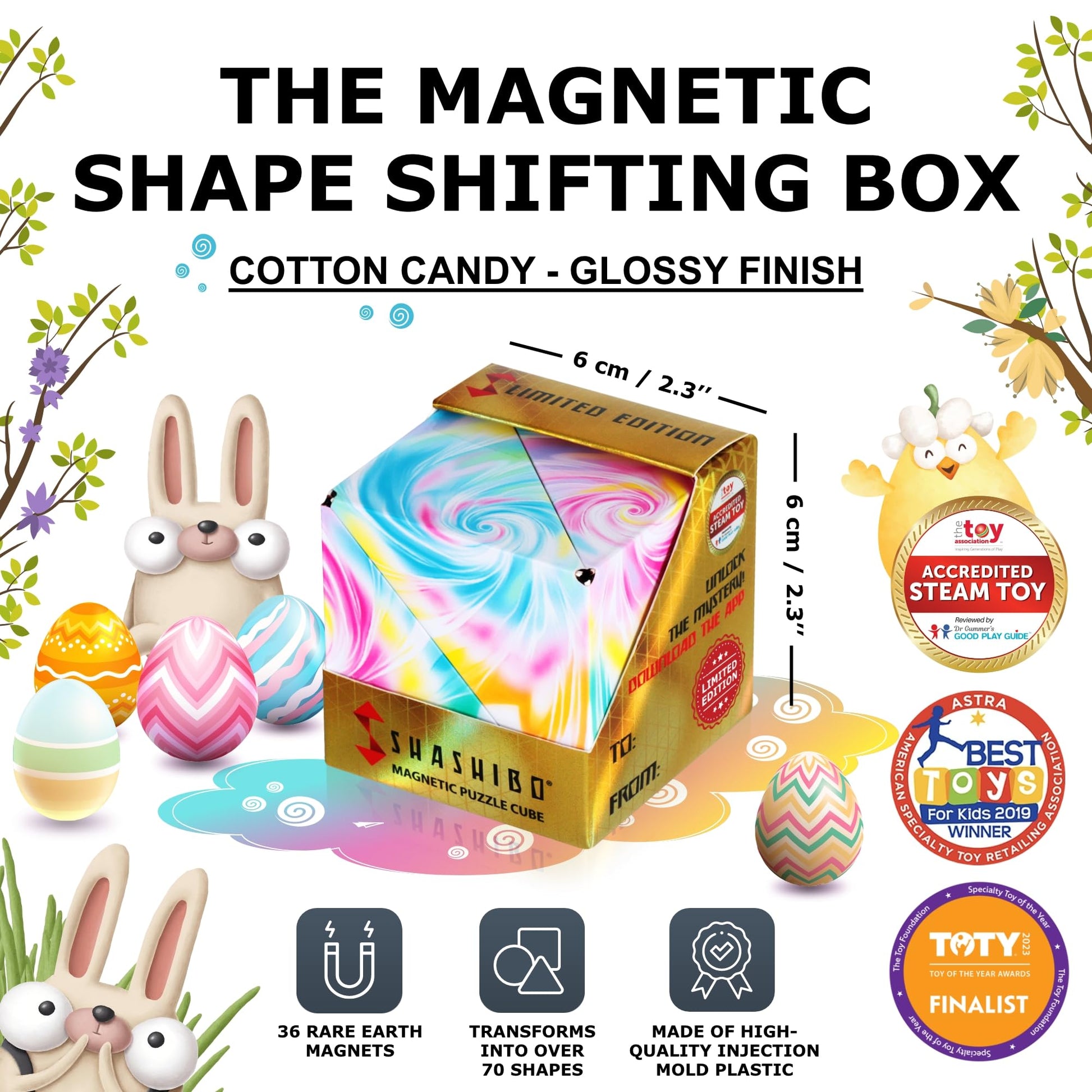 - Unlike other puzzle box toys that turn out disappointing & dull, the patented, award-winning shashibo sensory box features 36 rare earth magnets for an innovative design that transforms into over 70 shapes. Fits comfortably in the hand for hours of mind-challenging fun, stimulate the senses with unlimited creative possibility! Can you master the shape-shifting box?