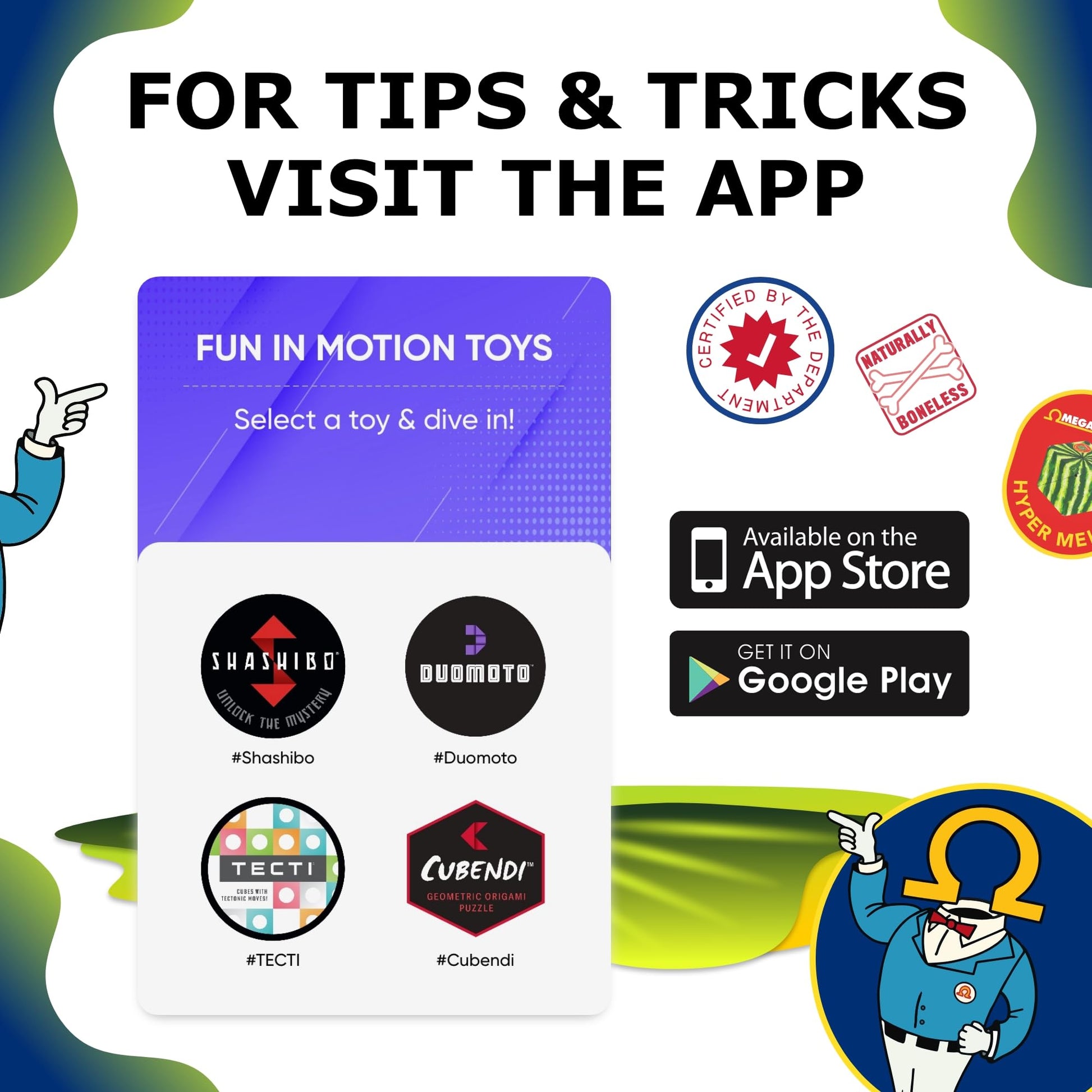 - At fun in motion toys, we create toys that stimulate the mind, body & imagination. Designed in the U.S. and Germany, our award-winning magnet cube is made to challenge the senses and build skill & coordination and bring people together for hours of fun. Your happiness is our #1 goal! If you need any help with your shashibo transforming cube, our happiness engineers are standing by. Click our storefront to see our entire range of toys.